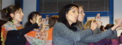Ma Michele Napolitano, il maestro, non è inquieto, ed instaura subito un colloquio molto rilassato, spiritoso, beh, proprio festoso, con i convenuti e con i suoi cantanti, ragazzi e ragazze (ma anche alcuni signori e signore), provenienti da tutto il mondo, anche se la pelle bianca e la lingua italiana sono decisamente preponderanti.