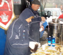 L’anticipo, benché superiore alle intenzioni, si rivelerà estremamente prezioso, per affrontare la salita sotto la pioggia a passo molto tranquillo, e giungere in tempo per cambiarmi ed indossare la maglietta, il maglione e il pile che porto con me annodati, aggrovigliati in cintura e fin sotto l’elastico della pantacalza, nonché per usufruire del ristoro prima dell’arrivo del plotone ufficiale, e infine per partecipare al consueto brindisi tutti insieme.