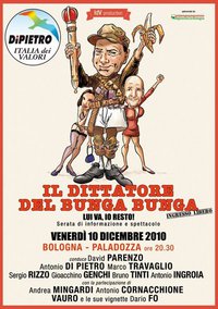 ‘Il dittatore del bunga bunga’ il titolo dello spettacolo; e alcuni protagonisti in comune con l’altra storica serata. (vedi qui)