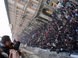 Raggiungo la Cavallona per cominciare immediatamente a lavorare, ma con le orecchie attaccate ai notiziari di Popolare-network, da cui apprenderò della censura di quanto avvenuto nelle piazze, negli scandalosi telegiornali di regime, e con il desiderio di collegarmi poi ad internet, a fine serata di lavoro, da cui avrò notizie molto più confortanti circa l’epidemia di partecipazione in tutte le città d’Italia.