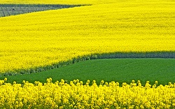 Folate di vento freddo mettevano in dubbio la mia scelta primaverile di indossare, come maglia, solo la canottiera che mi fu regalata dal negoziante dove acquistai le nuove scarpette. Ma poi il vento è calato e la fatica ha scaldato il motore. E intanto un sole splendido vivificava una natura assolutamente fantastica: certe fittissime e vaste distese di fiori di colza sembravano degli irreali laghi di colore giallo canarino, da lasciare stupefatti.