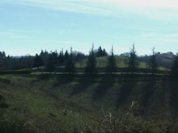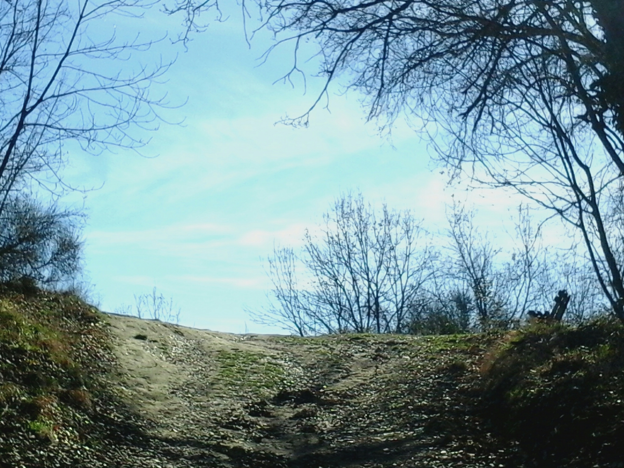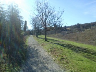 Mi aspetta una variazione continua sul tema percorso naturalistico: boscaglia, radure, prati, declivii, qualche rara costruzione; il tutto con la continua colonna sonora del cinguettio degli uccelli.