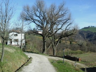 A dimostrazione del possibile indotto economico di un turismo ecologicamente sostenibile, supero, lungo l’ultima parte di strada sterrata, due diverse strutture (la prima intitolata proprio “Alla Via degli Dei”). Hanno anche un’altra particolarità in comune: dei cani, che appena mi scorgono cominciano ad abbaiare furiosamente.