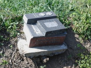 Ma poi, frutto molto tetro di uguale abbandono, un altro avvistamento sorprendente a lato della strada: dei pezzi di lapide funeraria dedicata a due giovani, presumibilmente morti in un incidente.