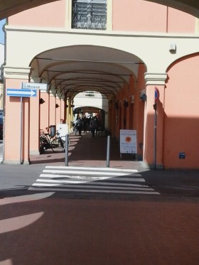 L’avvicinamento a Castelfranco procede con un buon grado di sincronizzazione rispetto all’appuntamento; una bretella stradale dirotta il grosso del traffico fuori dalla cittadina, concedendomi un altro po’ di tregua dal continuo frastuono; molto più lungo del previsto si rivela tuttavia raggiungere il centro, che finalmente è testimoniato dalla comparsa di un elemento inequivocabile: il portico.