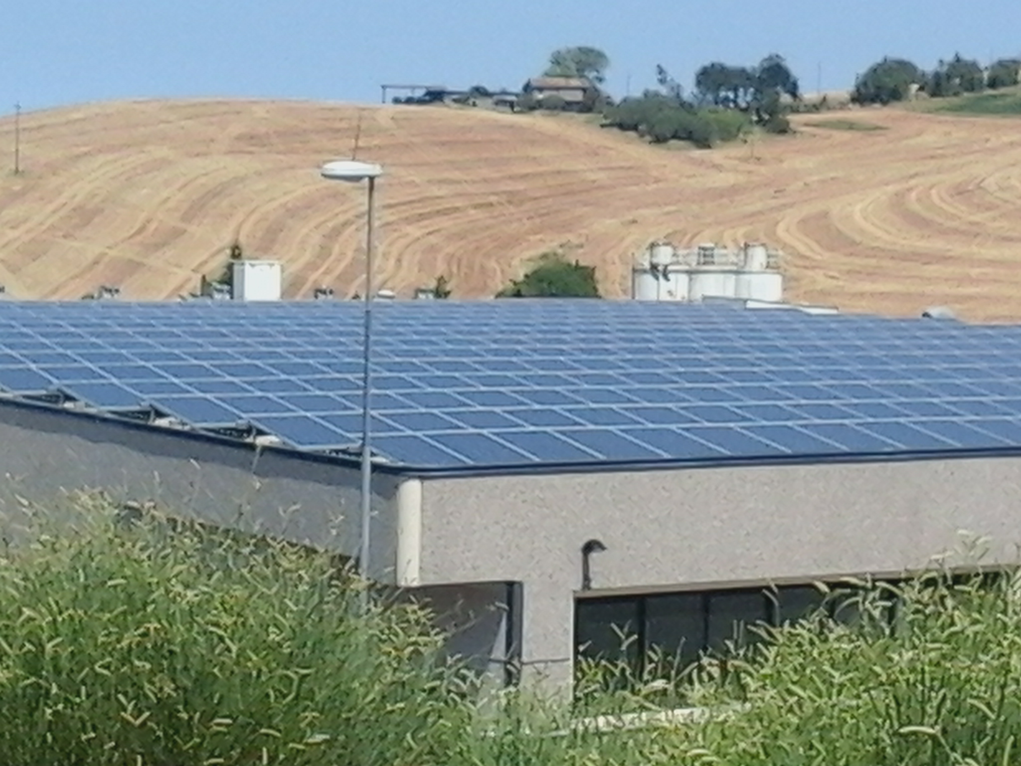 Lo stesso invito mi proviene da un’immagine che sento amica: il tetto di un’azienda alimentare completamente ricoperto di pannelli fotovoltaici.