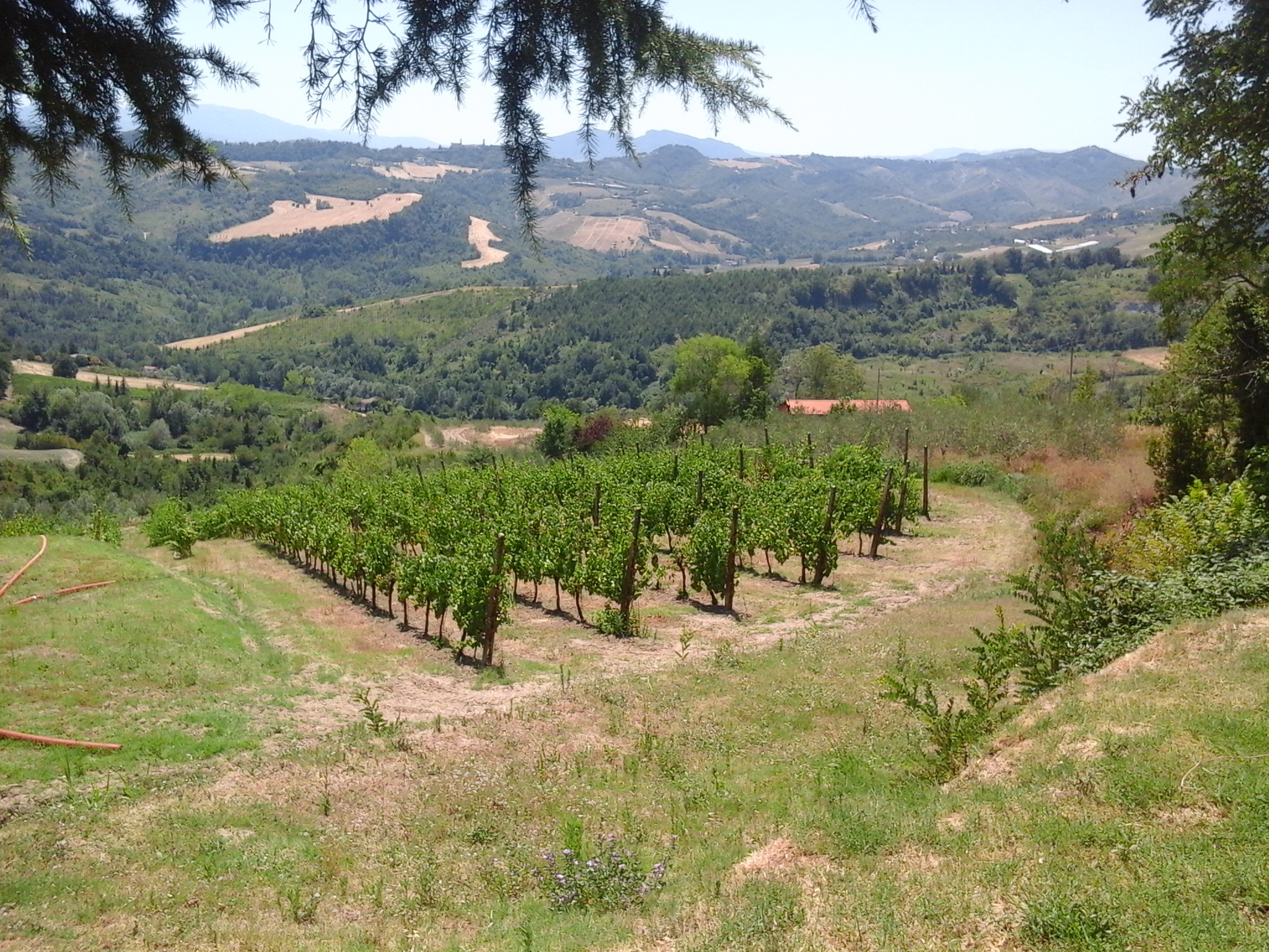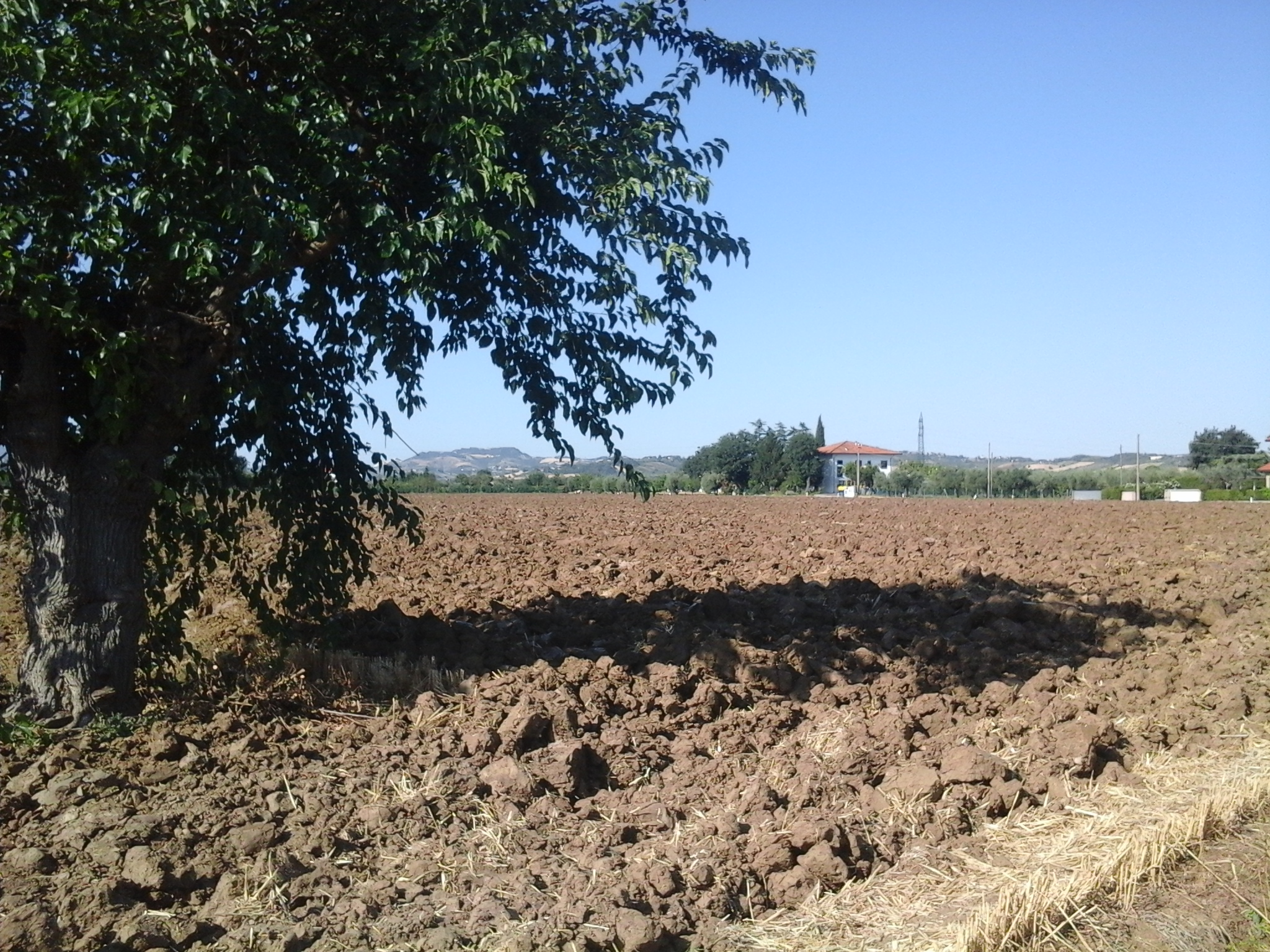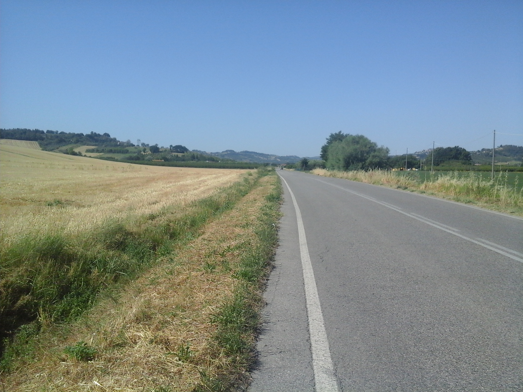 Poco dopo il tragitto per uscire da Santarcangelo, vengo dispensato dal fastidio del traffico: tutto il resto della lunga tappa si svolgerà per strade di campagna piuttosto tranquille e dominate dai suoni della natura, in una specie di terra di nessuno contesa fra le ultime propaggini collinari e l’incombente Pianura Padana.