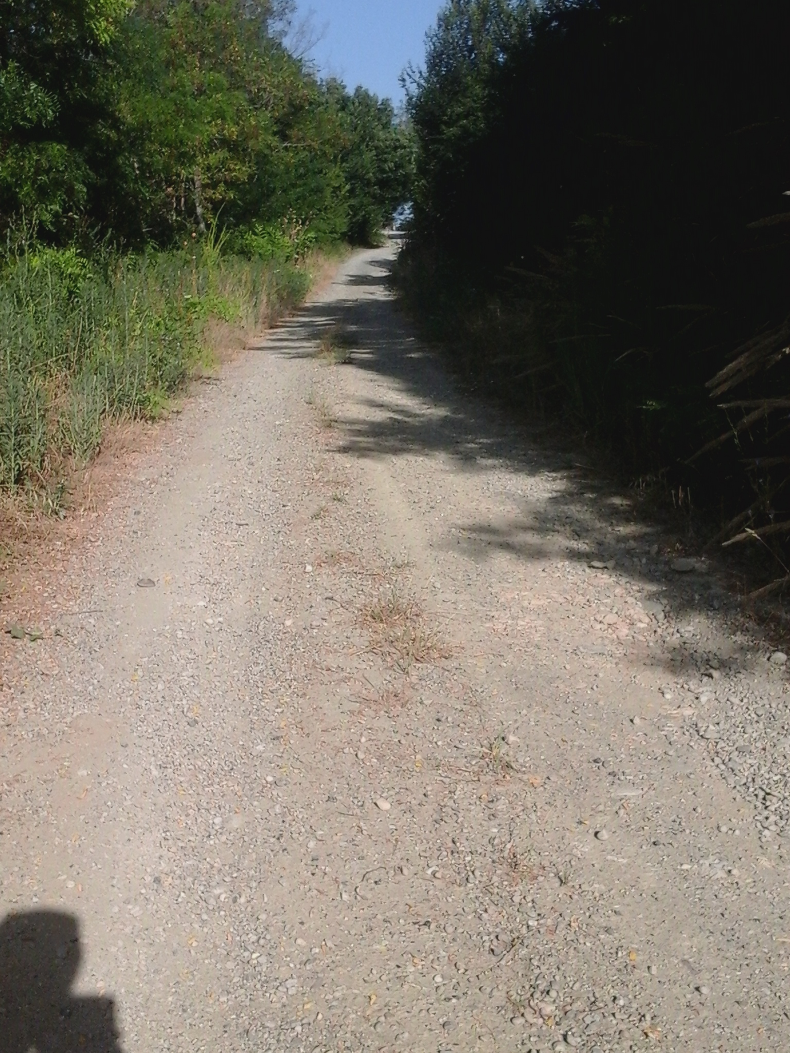 Google, il genio della mia lampada, anzi del mio tablet, deve aver letto le mie lamentele sui lunghi inizi pieni di traffico delle ultime due tappe e oggi mi propone esattamente l’opposto: per oltre due ore mi farà avanzare per una stradina sterrata in mezzo alla boscaglia.