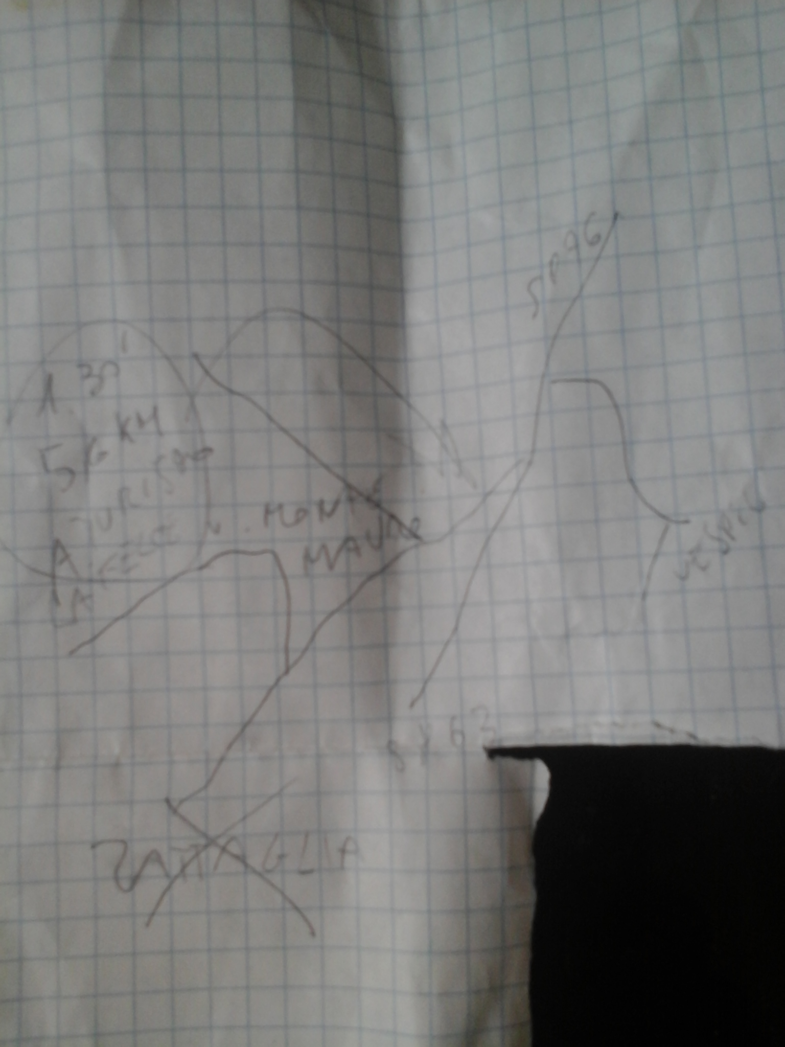Interrogo avidamente Google Maps: itinerario, distanze, rari punti di riferimento e, con carta e matita, disegno in due parti questa insigne opera di cartografia:
