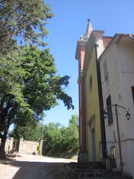 Ma il mio fedele pilota ha deciso, proprio ora, di farmi uno scherzetto: mi fa andare su per la salita di Pizzocalvo e, raggiunta la chiesa, mi dice di proseguire per una stradina stretta.