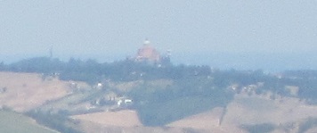 Laggiù, all’orizzonte, è minuscola, poco più di un puntino, ma inconfondibile: sì, è proprio la sagoma della Basilica di San Luca, incredibile! Chi è nato o vissuto a Bologna sa che, per chi torna da un viaggio, scorgerla da lontano fa lo stesso effetto del faro del porto di arrivo per chi naviga in mare.
