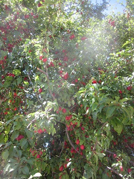 Mentre l’ennesimo albero di mirabolani mi concede una ricca e rinfrescante merenda,