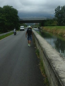 Ho il vantaggio di non dover cercare le strade giuste: Massimo le percorre abitualmente in bicicletta; da parte mia mi accorgo di essere un pessimo compagno di viaggio, tutto concentrato sul mio malessere, che si fa sentire e continua a rendere l’impresa odierna una difficile scommessa.