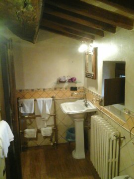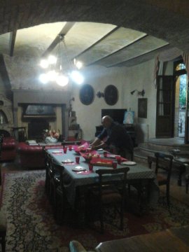 Strano posto, il mio alloggio della scorsa notte. Lo definirei in stile “rustico-castellano”: arredamento, infissi, illuminazione, perfino la tinteggiatura, sono tesi a evocare l’atmosfera di un antico maniero, a una potenziale clientela agiata in cerca di capricci e suggestioni, e che tuttavia non può rinunciare a una bella piscina nel giardino.