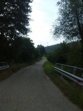 Uscito dal piccolo paese di Piosina, affronto per lungo tratto una zona pianeggiante, in cui i fabbricati artigianali e residenziali stentano a cedere il posto alla campagna umbra.