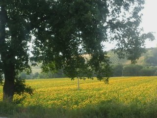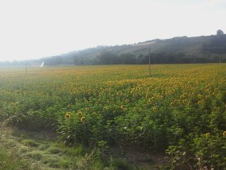 Stando attento a non farmi travolgere, riesco tuttavia a scattare qualche immagine ai campi di girasole.