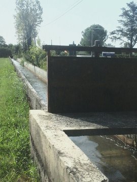 Ora la strada, più stretta e tranquilla, è affiancata da un’opera di canalizzazione idrica molto vistosa.