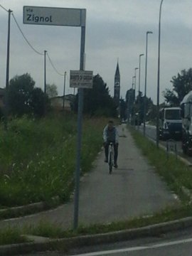 Fermo un ciclista anziano, con le braghe corte e una casacca da lavoro: “Scusi è Zenson questo gruppo di case?”