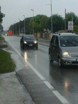 Ancora l’immissione in una via più larga e importante, benché non molto trafficata, sotto un cielo che va ingrigiendosi.