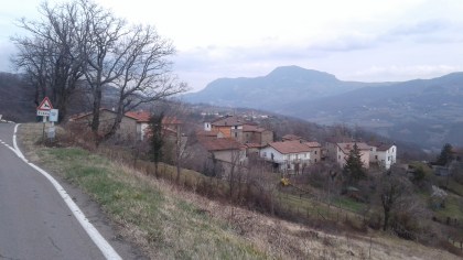 Anche se vi ci rechiamo in macchina, scatto un’ultima foto che ritrae il caseggiato nel centro del paese, sotto un cielo ora finalmente azzurro.