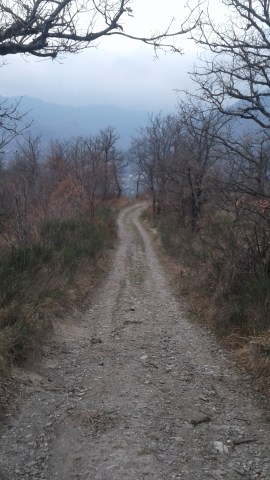 Finché non giungiamo all’inizio di una bella mulattiera in ripida discesa, vigilata da un cagnetto furibondo nei nostri confronti.