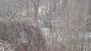 fra i rami di un albero, come una magia compare anche un vistoso sacchetto bianco.