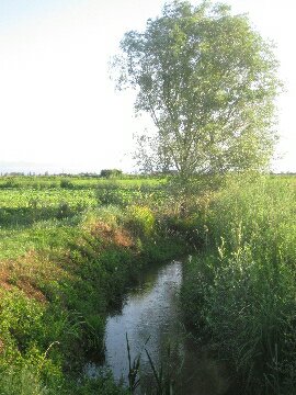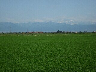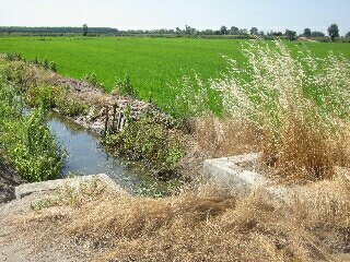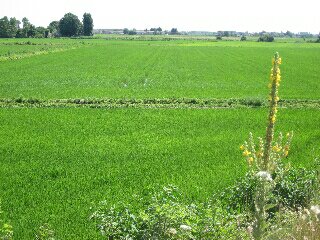Ancora il verde delle risaie, fra sistematiche opere di canalizzazione delle acque.