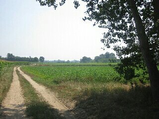 La pianura lombarda continua a offrire armoniosi spettacoli, ma a differenza di quella piemontese, che mi aveva affascinato tanto nella zona dopo Ivrea, ma anche in quella di Vercelli, mi accorgo che manca di un elemento acustico importante, quell’isolamento totale dal rumore dei motori, che qui continuano, magari quasi impercettibilmente, a ricordarci la presenza possessiva e distruttiva dell’uomo nella sua smania urbanizzatrice.