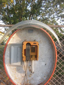 Davanti a un edificio militare, fa bella mostra di sé un dispotivo di telefonia di classe “zero-G”: