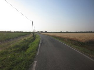 L’immensità silenziosa del panorama padano, solcato da stradine asfaltate battute da qualche trattore e da rare autovetture, resterà costante per quasi tutto il percorso odierno.