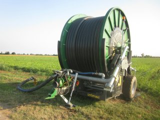 Tutta la tappa odierna, come sapevo, si svolgerà nel trionfo di una campagna immensa, talvolta irrigata con lontani potentissimi getti, grazie a rumorosi macchinari a motore che, presso la strada, estraggono acqua dalla falda e la convogliano in grossi tubi…