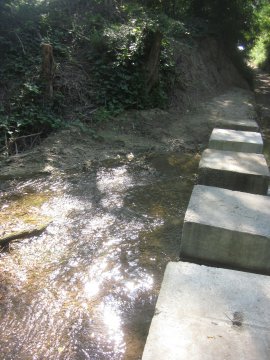 e da attraversare sopra un ponte pedonale di blocchi di cemento.