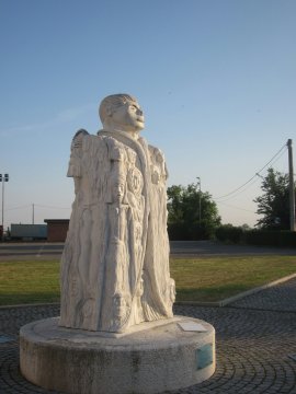 Nella frazione di San Giorgio, però, non vedo monumenti al nostro glorioso musicista, ma piuttosto questa fattispecie di statua che inneggia al Primo Maggio, tardivamente sì, ma munita di regolare mascherina…