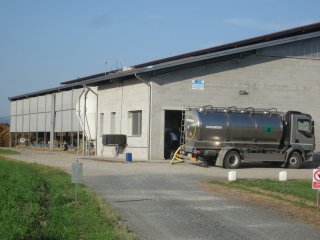 Un’autocisterna, presso un piccolo allevamento di vacche, fa il pieno del latte sottratto loro per le improrogabili esigenze alimentari della specie umana dominante.