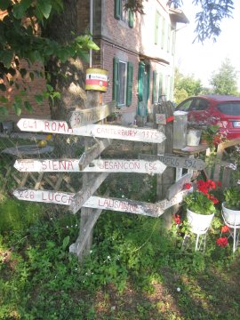 Un angolino di “riferimenti pellegrini”, come in rare circostanze incontrai anche l’anno scorso, mi dà un confortante senso di riconoscimento del mio status di camminatore sull’antica via, quanto meno.