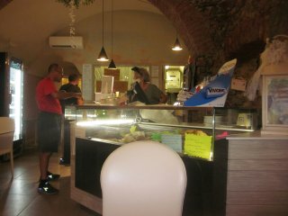 e poi in un panificio, accolti con simpatia dalla fornaia che ci chiede da dove siamo partiti, per essere lì così presto.