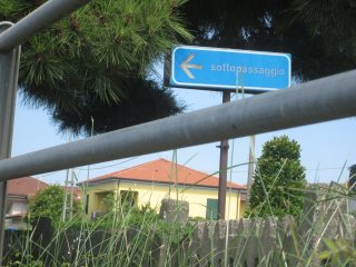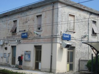 Abbiamo studiato su Google Maps una possibile scorciatoia che, percorrendo un brevissimo tratto della statale, poi attraverso la piccola stazione di Luni, dovrebbe farci arrivare direttamente al mio bed and breakfast.