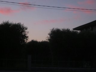 Poco più tardi, con la felpa sopra la maglietta, mi incammino, mentre l’alba dipinge piccole nuvole.