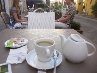 La signora ha voluto prepararmi personalmente la colazione, alle cinque e mezza; mi chiede se preferisco consumarla in camera o in giardino.