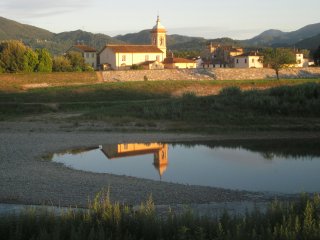 Il fiume Serchio mi appare vasto e movimentato da piccole cascate.
