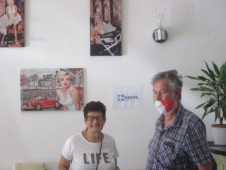 Poco dopo siamo seduti al tavolino di un bar, a conversare animatamente di luoghi e itinerari, poiché sono camminatori appassionati anche loro, benché attualmente Oriana sia bloccata dal decorso di un intervento al ginocchio.