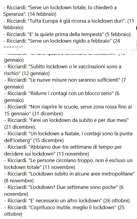 Sempre nella pagina Facebook di Carella, ho trovato una testimonianza (a firma Mattia Pertoldi) delle dichiarazioni di Walter Ricciardi lungo i mesi: coriaceo, il nostro grande esperto! (clicca qui).