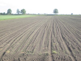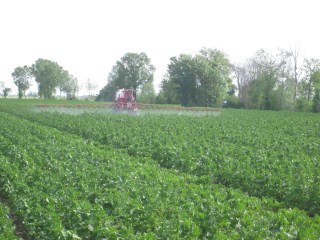 Un carro agricolo, dopo molte manovre, si è orientato verso il campo, poi, come un’arma spaziale, ha estratto gli alettoni che ora spargono ordinatamente chissà quali schifezze.