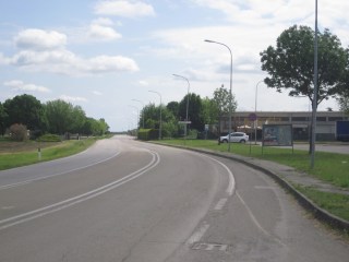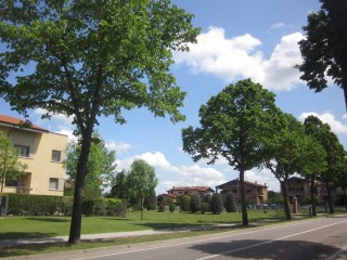 Come un rettifilo finale di una maratona, un lungo viale alberato, con un’invitante pista ciclopedonale sulla destra, mi conduce verso il paese.