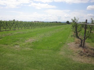 Il peso della “weiss” da mezzo litro e di un’arancia formato XL (che arricchirà la colazione di domattina), unitamente alla fatica, rendono il mio passo molto più lento, nell’uscire dal ridente paesino in direzione del “Pero Tondo”, in prossimità del torrente Sillaro, che segna il confine fra l’Emilia e la Romagna.