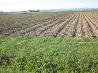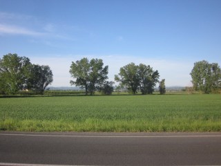 Ancora campi piatti nel palcoscenico alla mia destra, con la collina che fa sempre da quinta laterale.