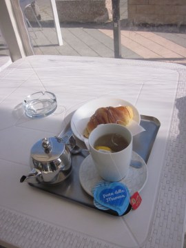 Non si può stare all’interno, come solitamente trovo molto più rilassante, ma c’è anche una veranda coperta, nella quale trasporto il mio piccolo vassoio.