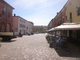 Non distante da Mordano, c’è un altro paese, Bagnara di Romagna, che mi conquista con la sua splendida piazzetta centrale pedonalizzata.