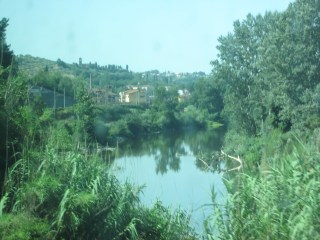 La ferrovia fiancheggia l’Arno, che solo in rari momenti si concede alla vista del viaggiatore.