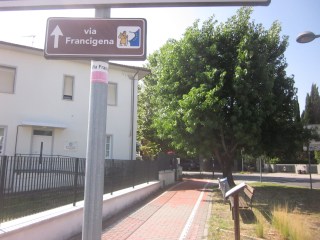 A un certo punto, il percorso francigeno si separa da quello indicatomi da Google Maps: dopo un attimo di dubbio, scelgo di seguire la via ufficiale, che comunque mi porterà a quel bar.
